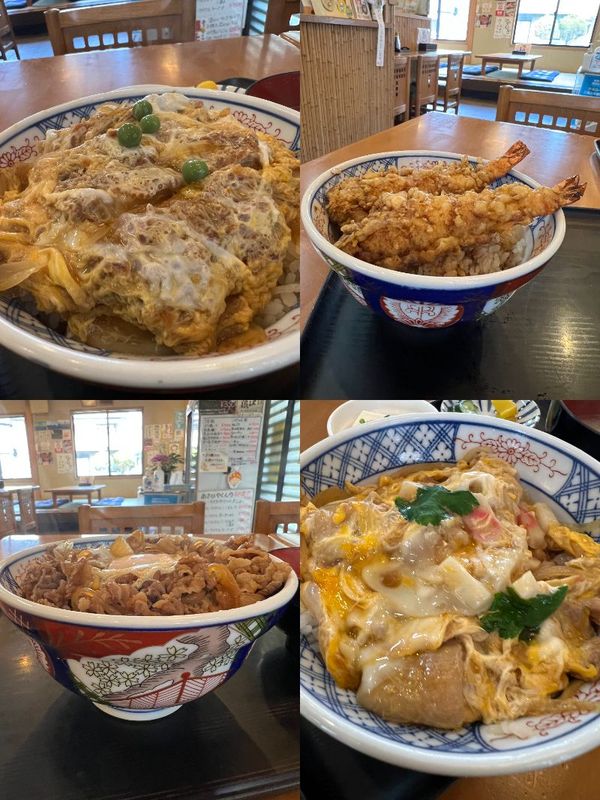 越谷市東柳田町の朝日屋は日本そば屋だが丼物のメニューも充実している。牛丼・かつ丼・親子丼……。錦小桜のどんぶりに入った朝日屋の丼物八品を食べ尽くす。