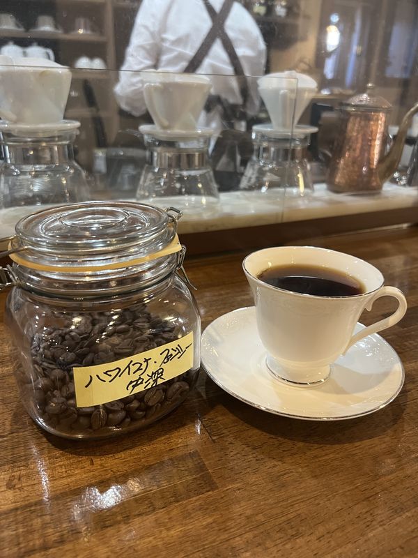 一杯目は、ハワイコナ・エクストラファンシー。ハワイ島のコナ地区で栽培されるコーヒーで、希少価値が高く、アメリカのホワイトハウスの晩餐会で出されるコーヒーとしても名高い。