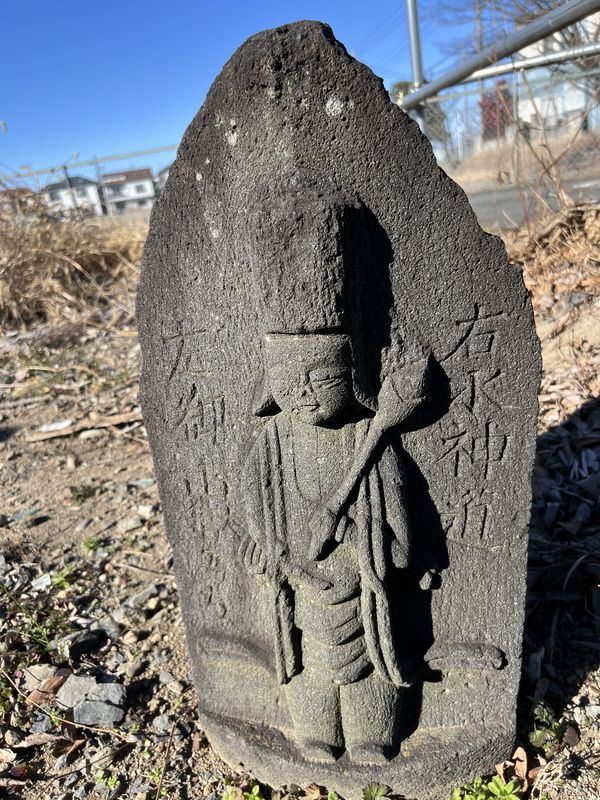 向かって右は、青面金剛像庚申塔。石塔型式は駒型。江戸後期・天明元年(1781)造塔。