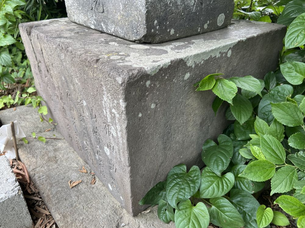 石塔型式は山状角柱型。江戸後期・嘉永2年(1849)造塔。正面の主銘は「羽黒山 湯殿山 月山 三社大権現」。最頂部に、瑞雲に乗った日月、その下に梵字「アーンク」