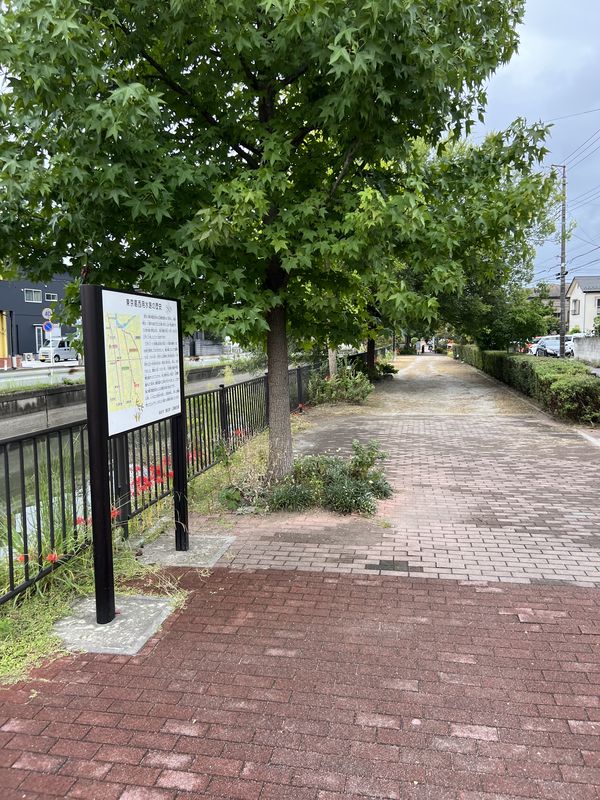 公園前のさんがさくら通りを渡って谷古田河畔緑道(やこたかはんりょくどう)へ。谷古田河畔緑道は谷古田用水沿いに整備された緑道で、全長3.7キロ。