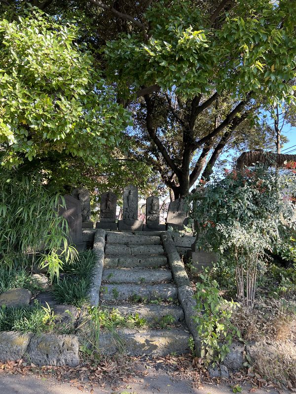 庚申塚の脇には、馬頭観音文字塔をはじめ二十三夜塔(にじゅうさんやとう)や道しるべを兼ねた六十六部(ろくじゅうろくぶ)供養塔なども置かれている。