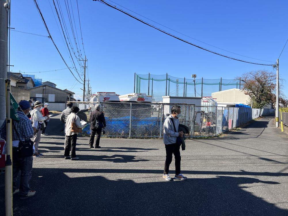出羽堀樋門から50メートルほど先にある綾瀬川樋管の前で、案内役の加藤氏を囲んで集合写真を撮った。